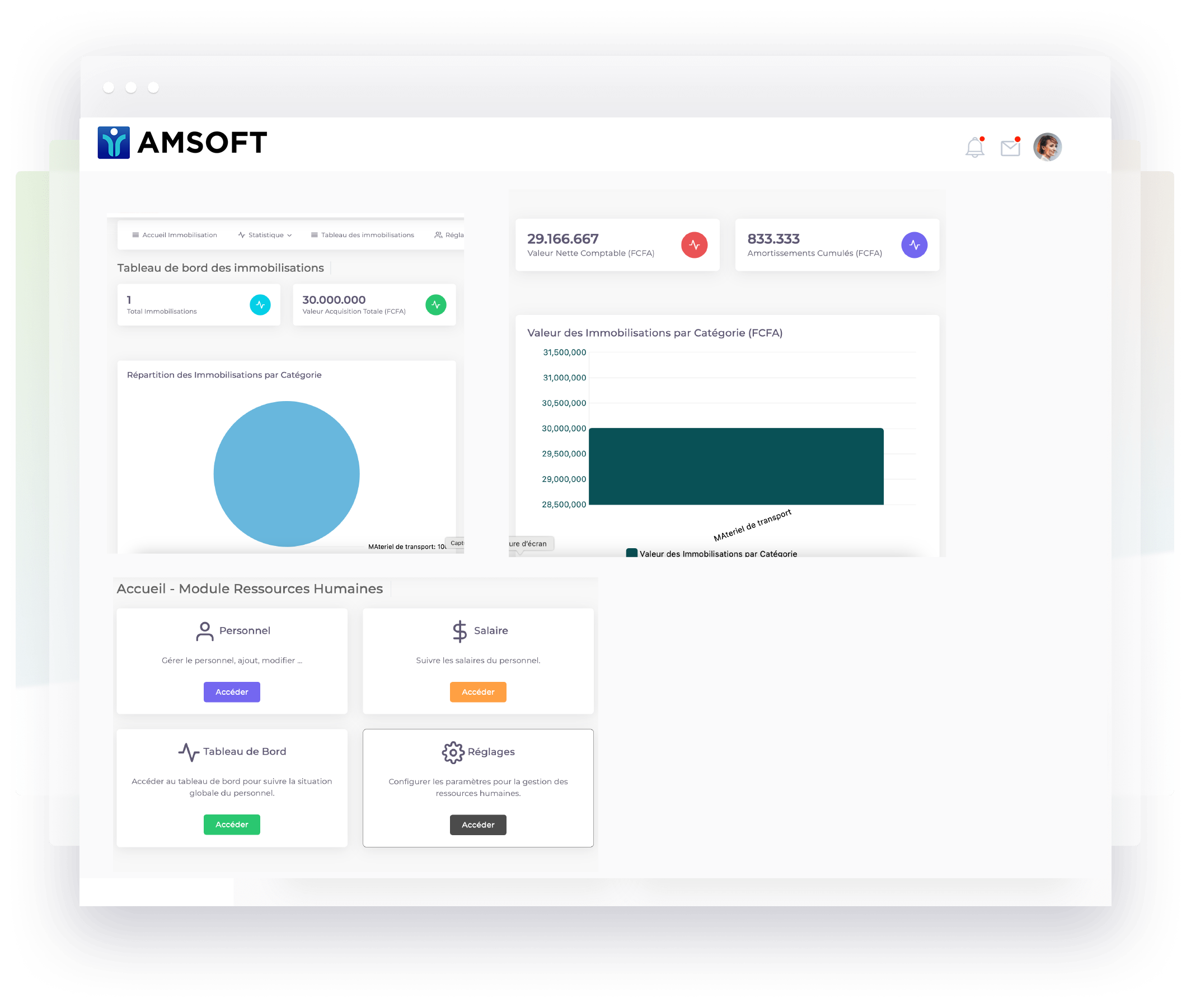 Avec AMSOFT, oubliez la complexité des systèmes dispersés. Fini les logiciels multiples, les doubles saisies et les pertes de temps : tout est centralisé dans une seule plateforme intelligente. De la production à la gestion des sinistres, de la comptabilité à la GEC, de la GED et l’archivage jusqu’aux immobilisations, ressources humaines et CRM, AMSOFT intègre l’ensemble des modules essentiels au pilotage complet d’une compagnie d’assurance.